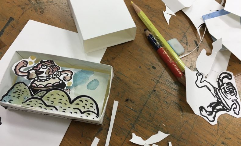 その後、「はこ絵本」の制作にとりかかってもらう。