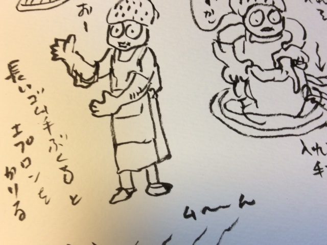 藍染のツボに入れいてる間、布をさわさわ触る。